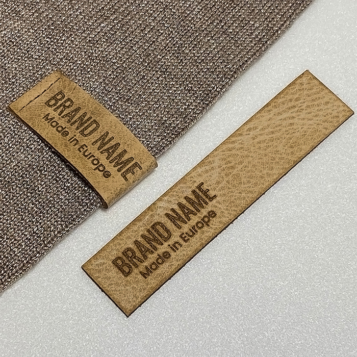 Naturaalsest nahast mudelist EP-M46 valmistatud brändimärgis, mis sobib riiete, kottide, kingade, erinevate rõivaaksessuaaride õmblemiseks, isikupärastatud kaubamärgi nimega lasergraveerimisega. See nahast etiketimudel on valmistatud kvaliteetsest ehtsast nahast, kasutades uusima põlvkonna seadmeid ja professionaalseid lasergraveerimis- või reljeefmeetodeid.