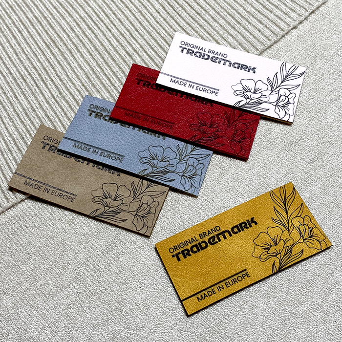 Valmistatud sünteetilisest nahast etikettide tellimiseks Mudel EP-M103, kohandatud logo või kaubamärgiga, sobib rõivastele ja muudele tekstiiltoodetele. See kunstnahast etiketi mudel on valmistatud polüuretaanist, tuntud ka kui sünteetiline nahk, kõrge kvaliteediga, kasutades suure jõudlusega tehnikaid ja seadmeid. Sildid lõigatakse laseriga vastavalt sellel lehel esitatud mõõtmetele ja kohandamine toimub lasergraveerimise teel täpsusega kuni 0,2 mm.