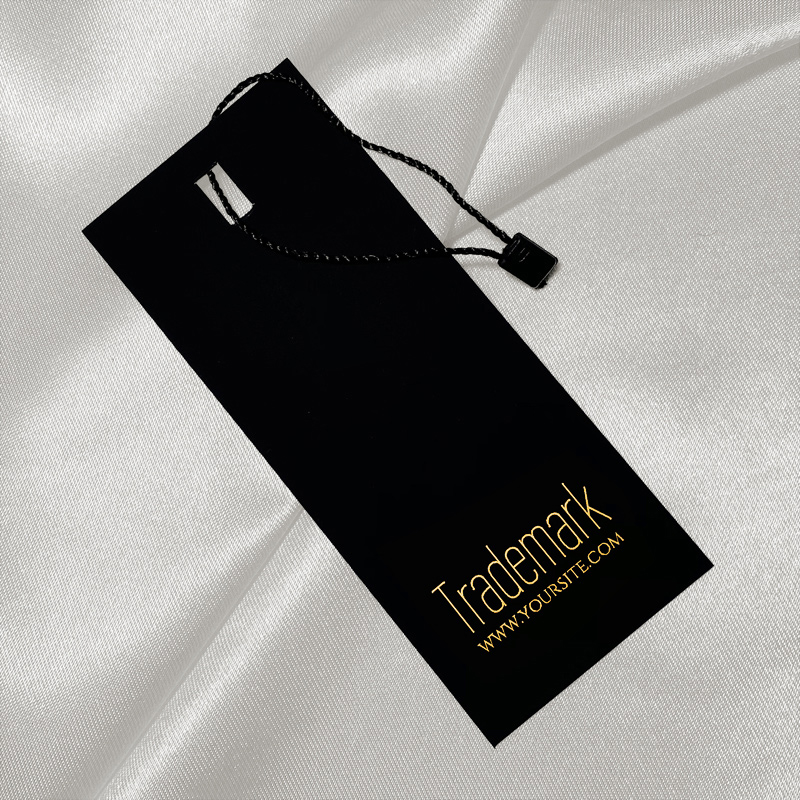 Papist silt riietele, sealhulgas pitser polüesternööriga kinnitusmudeli HT-M108 jaoks, mis on valmistatud paksust mustast papist, millel on kuldne tekst või logo. Seda tüüpi riputussilt on valmistatud kvaliteetsetest materjalidest, kasutades digitaalse printimise ja viimistluse valdkonnas kõige arenenumaid tehnoloogiaid.
