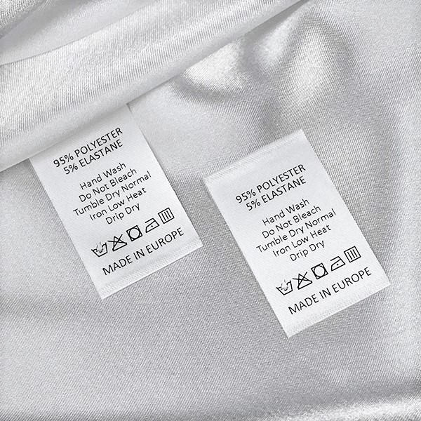 Pesuhooldusmärgis koos hooldus- ja pesemissümbolitega, kohandatud kaubamärgi nime ja materjali koostisega, trükitud peenele valgele satiinile. Seda tüüpi tekstiilimärgis on valmistatud digitaaltrüki valdkonna kõige arenenumate tehnoloogiate abil tekstiilitoele. Sildid on trükitud spetsiaalsele satiinile termoülekande meetodil, millel on muljetavaldav prindikvaliteet ja kõrge pesukindlus.