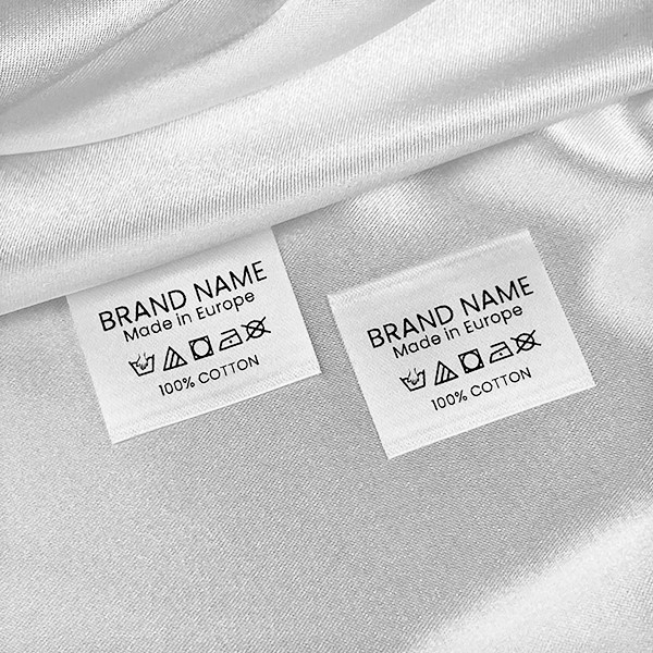 Valgest satiinist valmistatud rõiva- ja rõivaaksessuaaride tekstiilist etikett, mis sisaldab pesemis- ja hooldussümboleid ning kanga koostist. Seda tüüpi tekstiilimärgis on valmistatud digitaaltrüki valdkonna kõige arenenumate tehnoloogiate abil tekstiilitoele. Sildid on trükitud spetsiaalsele satiinile termoülekande meetodil, millel on muljetavaldav prindikvaliteet ja kõrge pesukindlus.
