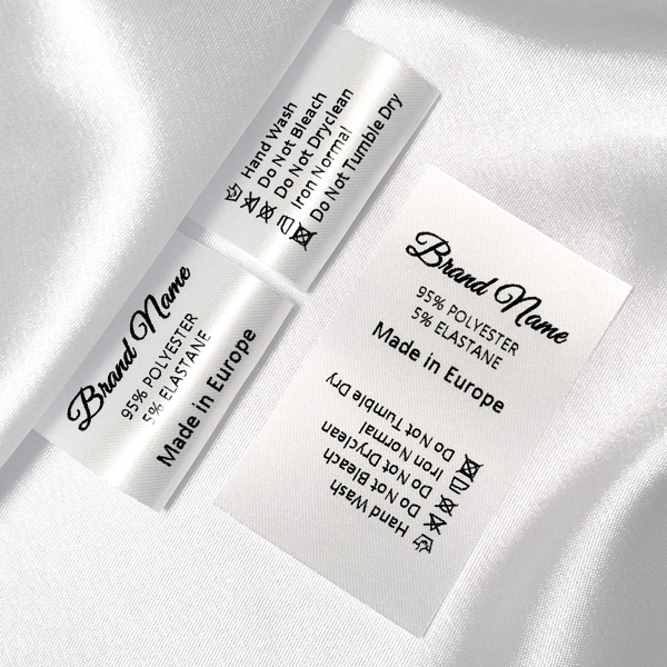 Pesupesemismärgis, mis on valmistatud peenest valgest satiinist, kohandatud kaubamärgi nime, pesusümbolite ja pesemisjuhistega. Seda tüüpi tekstiilimärgis on valmistatud digitaaltrüki valdkonna kõige arenenumate tehnoloogiate abil tekstiilitoele. Sildid on trükitud spetsiaalsele satiinile termoülekande meetodil, millel on muljetavaldav prindikvaliteet ja kõrge pesukindlus.