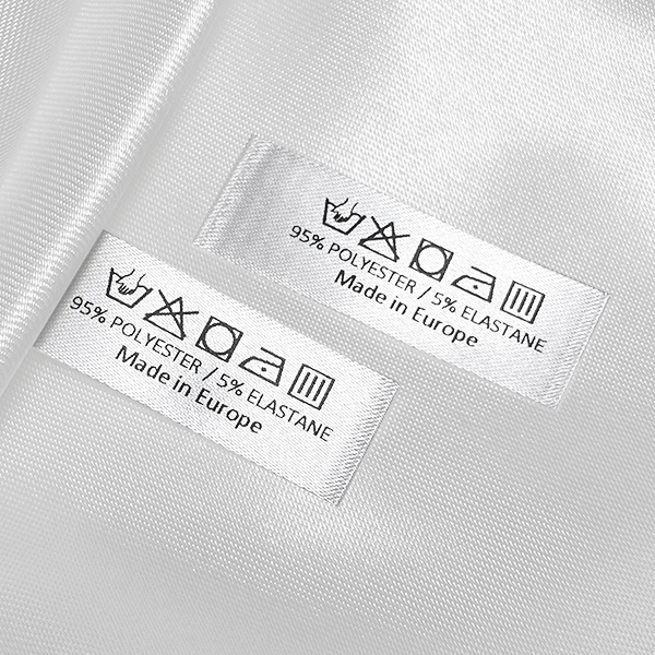 Tekstiilimärgis pesu- ja hooldussümbolitega riietele õmblemiseks, isikupärastatud üksikasjadega materjali koostise ja tootjariigi kohta. Seda tüüpi tekstiilimärgis on valmistatud digitaaltrüki valdkonna kõige arenenumate tehnoloogiate abil tekstiilitoele. Sildid on trükitud spetsiaalsele satiinile termoülekande meetodil, millel on muljetavaldav prindikvaliteet ja kõrge pesukindlus.