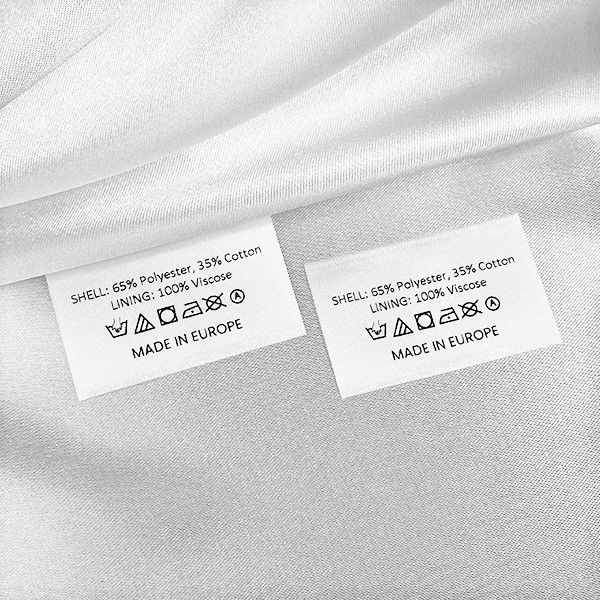 Tekstiilimärgis pesemis- ja hooldussümbolitega ning teave materjali koostise kohta, mis on kohandatud peenele kvaliteetsele satiinile, ultraheli kuumale lõikele. Seda tüüpi tekstiilimärgis on valmistatud digitaaltrüki valdkonna kõige arenenumate tehnoloogiate abil tekstiilitoele. Sildid on trükitud spetsiaalsele satiinile termoülekande meetodil, millel on muljetavaldav prindikvaliteet ja kõrge pesukindlus.