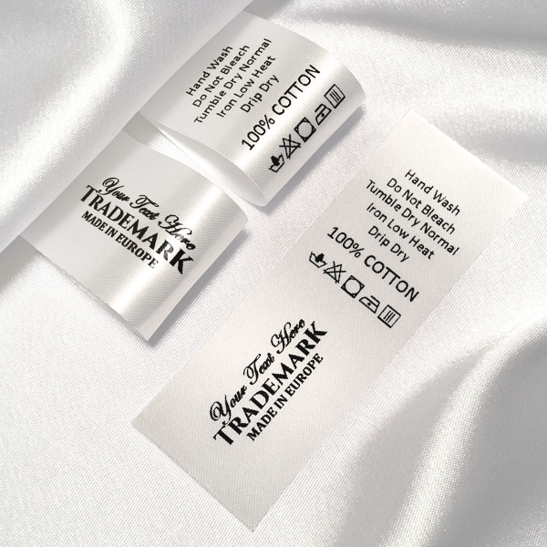 Pesuhooldusmärgis, mis sobib rõivastele ja erinevatele tekstiiltoodetele, eriti rõivastele, kohandatud peenele valgele satiinile. Seda tüüpi tekstiilimärgis on valmistatud digitaaltrüki valdkonna kõige arenenumate tehnoloogiate abil tekstiilitoele. Sildid on trükitud spetsiaalsele satiinile termoülekande meetodil, millel on muljetavaldav prindikvaliteet ja kõrge pesukindlus.