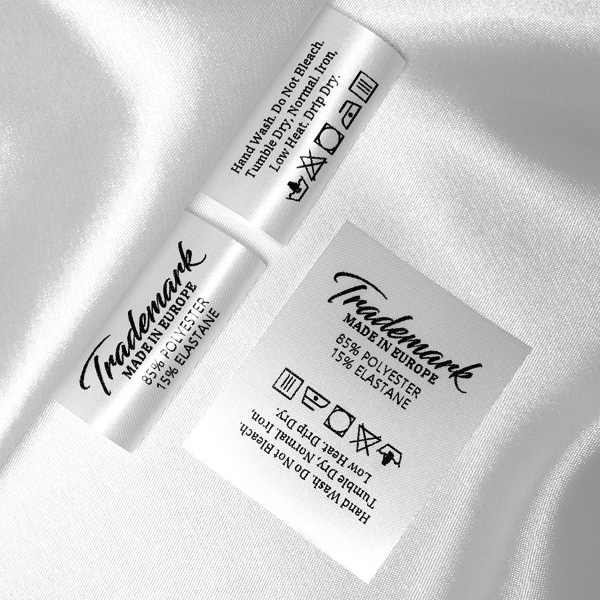Pesuhooldusmärgis, mis on kohandatud kaubamärgi, pesusümbolite ja pesemisjuhistega, sobib rõivastele ja rõivaaksessuaaridele. Seda tüüpi tekstiilimärgis on valmistatud digitaaltrüki valdkonna kõige arenenumate tehnoloogiate abil tekstiilitoele. Sildid on trükitud spetsiaalsele satiinile termoülekande meetodil, millel on muljetavaldav prindikvaliteet ja kõrge pesukindlus.