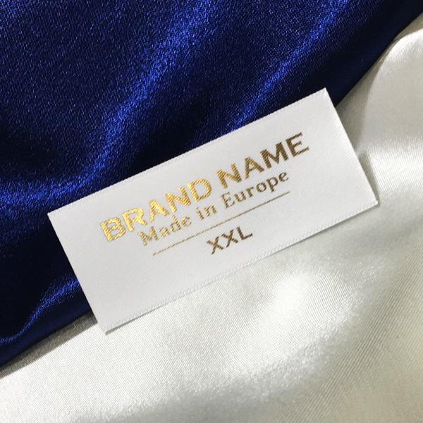 Kohandatud tekstide ja suuruse indikaatoriga trükitud kangasilt, mis sobib rõivaste ja rõivaaksessuaaride jaoks. Seda tüüpi tekstiilimärgis on valmistatud digitaaltrüki valdkonna kõige arenenumate tehnoloogiate abil tekstiilitoele. Sildid on trükitud spetsiaalsele satiinile termoülekande meetodil, millel on muljetavaldav prindikvaliteet ja kõrge pesukindlus.