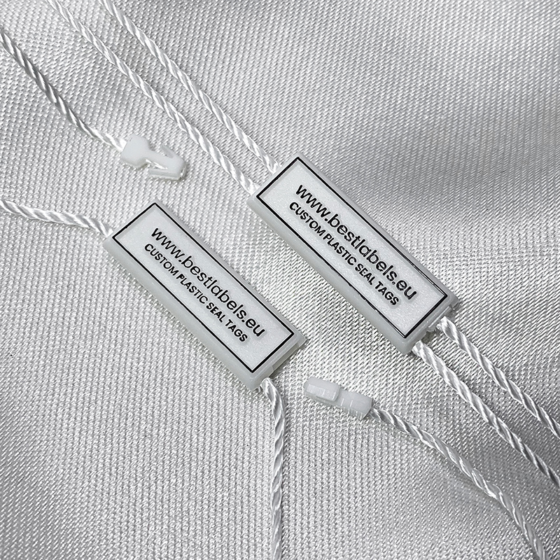 Kohandatud plastikust tihendisildi ST-M147 moetoodetele, nagu riided, jalatsid, kotid, ehted, rõivaaksessuaarid jne.